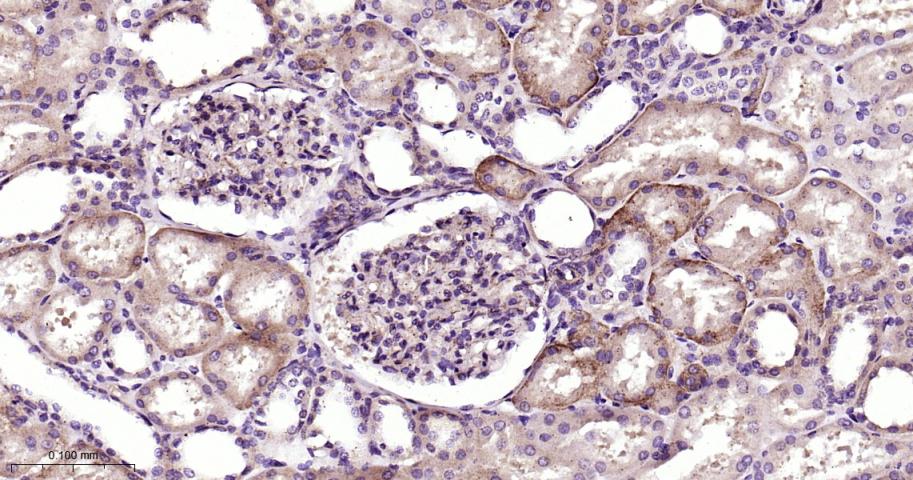 Paraformaldehyde-fixed, paraffin embedded Human Kidney; Antigen retrieval by boiling in sodium citrate buffer (pH6.0) for 15 min; Antibody incubation with PKC Monoclonal Antibody, Unconjugated(bsm-62952R) at 1:200 overnight at 4°C, followed by conjugation to the bs-0295G-HRP and DAB (C-0010) staining.