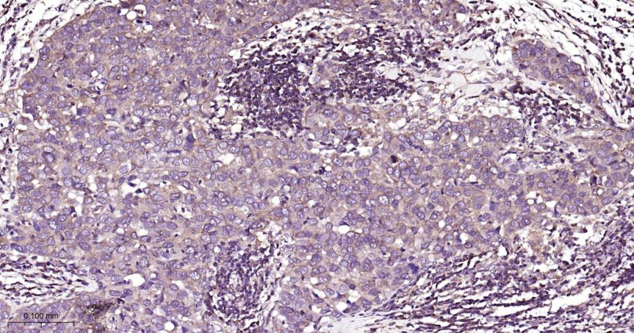 Paraformaldehyde-fixed, paraffin embedded Human Breast Cancer; Antigen retrieval by boiling in sodium citrate buffer (pH6.0) for 15 min; Antibody incubation with PKC Monoclonal Antibody, Unconjugated(bsm-62952R) at 1:200 overnight at 4°C, followed by conjugation to the bs-0295G-HRP and DAB (C-0010) staining.