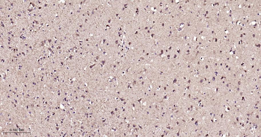 Paraformaldehyde-fixed, paraffin embedded Rat Cerebrum; Antigen retrieval by boiling in sodium citrate buffer (pH6.0) for 15 min; Antibody incubation with PKC epsilon Monoclonal Antibody, Unconjugated(bsm-62955R) at 1:200 overnight at 4°C, followed by conjugation to the bs-0295G-HRP and DAB (C-0010) staining.