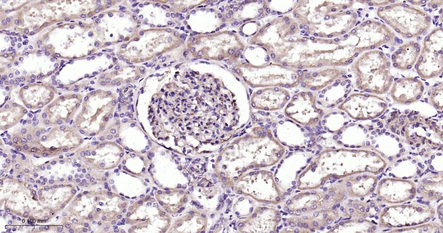 Paraformaldehyde-fixed, paraffin embedded Human Kidney; Antigen retrieval by boiling in sodium citrate buffer (pH6.0) for 15 min; Antibody incubation with PKC epsilon Monoclonal Antibody, Unconjugated(bsm-62955R) at 1:200 overnight at 4°C, followed by conjugation to the bs-0295G-HRP and DAB (C-0010) staining.