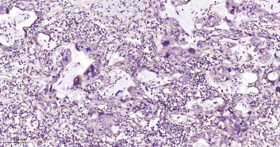 Paraformaldehyde-fixed, paraffin embedded Human Lung Cancer; Antigen retrieval by boiling in sodium citrate buffer (pH6.0) for 15 min; Antibody incubation with PKC epsilon Monoclonal Antibody, Unconjugated(bsm-62955R) at 1:200 overnight at 4°C, followed by conjugation to the bs-0295G-HRP and DAB (C-0010) staining.
