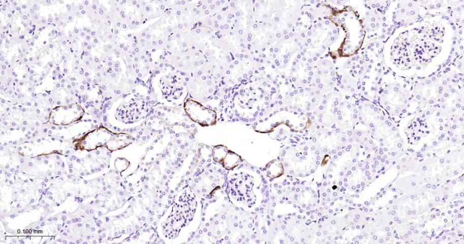 Paraformaldehyde-fixed, paraffin embedded Rat Kidney; Antigen retrieval by boiling in sodium citrate buffer (pH6.0) for 15 min; Antibody incubation with PKC Monoclonal Antibody, Unconjugated(bsm-62958R) at 1:200 overnight at 4°C, followed by conjugation to the bs-0295G-HRP and DAB (C-0010) staining.