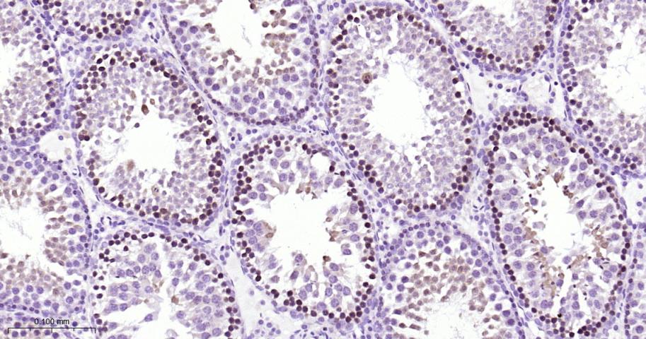 Paraformaldehyde-fixed, paraffin embedded Mouse Testicles; Antigen retrieval by boiling in sodium citrate buffer (pH6.0) for 15 min; Antibody incubation with PKC Monoclonal Antibody, Unconjugated(bsm-62958R) at 1:200 overnight at 4°C, followed by conjugation to the bs-0295G-HRP and DAB (C-0010) staining.