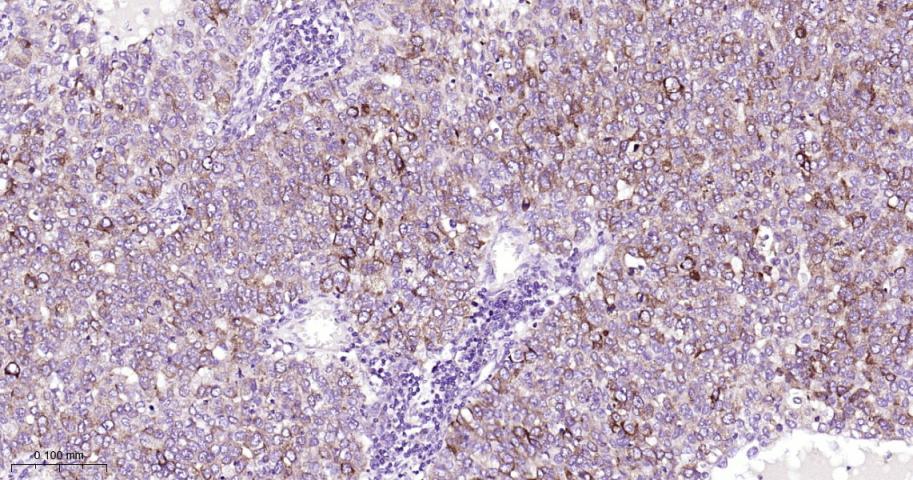 Paraformaldehyde-fixed, paraffin embedded Human Breast Cancer; Antigen retrieval by boiling in sodium citrate buffer (pH6.0) for 15 min; Antibody incubation with PKC Monoclonal Antibody, Unconjugated(bsm-62958R) at 1:200 overnight at 4°C, followed by conjugation to the bs-0295G-HRP and DAB (C-0010) staining.