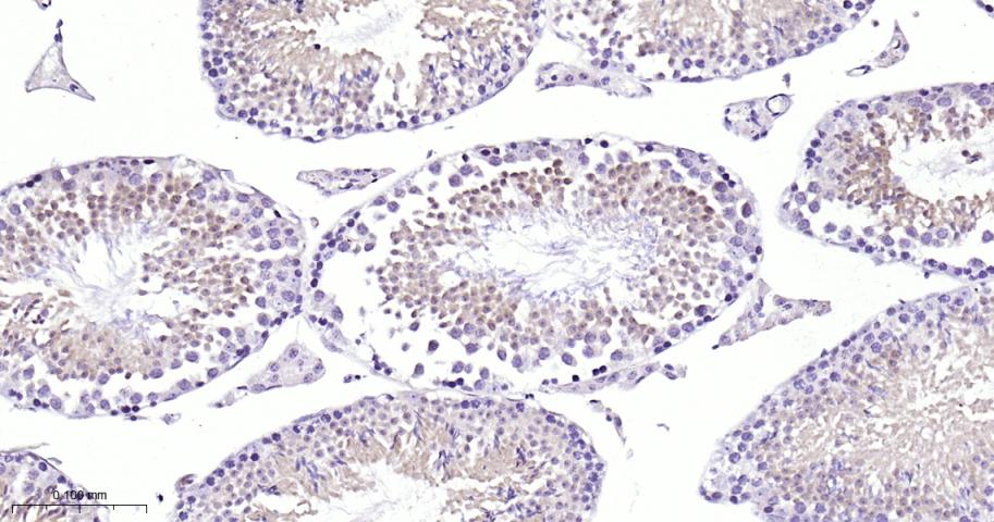 Paraformaldehyde-fixed, paraffin embedded Rat Testicles; Antigen retrieval by boiling in sodium citrate buffer (pH6.0) for 15 min; Antibody incubation with PKC Monoclonal Antibody, Unconjugated(bsm-62958R) at 1:200 overnight at 4°C, followed by conjugation to the bs-0295G-HRP and DAB (C-0010) staining.