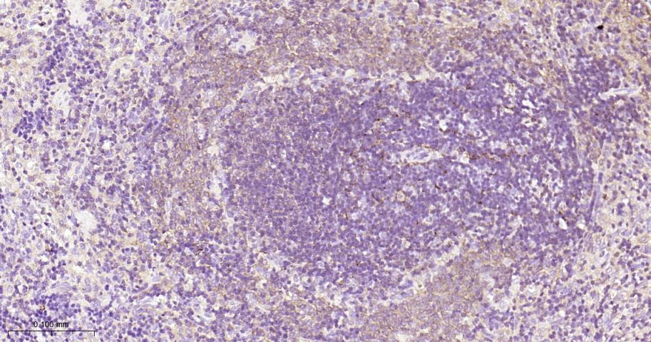 Paraformaldehyde-fixed, paraffin embedded Rat Spleen; Antigen retrieval by boiling in sodium citrate buffer (pH6.0) for 15 min; Antibody incubation with PKC Monoclonal Antibody, Unconjugated(bsm-62958R) at 1:200 overnight at 4°C, followed by conjugation to the bs-0295G-HRP and DAB (C-0010) staining.