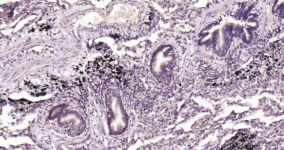 Paraformaldehyde-fixed, paraffin embedded Human Lung; Antigen retrieval by boiling in sodium citrate buffer (pH6.0) for 15 min; Antibody incubation with EDG3 Monoclonal Antibody, Unconjugated(bsm-62975R) at 1:200 overnight at 4°C, followed by conjugation to the bs-0295G-HRP and DAB (C-0010) staining.