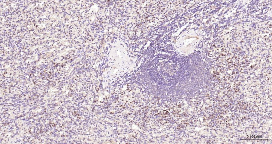 Paraformaldehyde-fixed, paraffin embedded Human Spleen; Antigen retrieval by boiling in sodium citrate buffer (pH6.0) for 15 min; Antibody incubation with EDG3 Monoclonal Antibody, Unconjugated(bsm-62975R) at 1:200 overnight at 4°C, followed by conjugation to the bs-0295G-HRP and DAB (C-0010) staining.