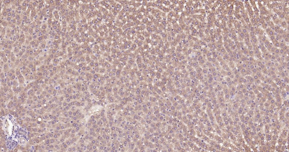 Paraformaldehyde-fixed, paraffin embedded Rat Liver; Antigen retrieval by boiling in sodium citrate buffer (pH6.0) for 15 min; Antibody incubation with DDIT3 Polyclonal Antibody, Unconjugated (bs-1361R) at 1:200 overnight at 4°C, followed by conjugation to the SP Kit (Rabbit, SP-0023) and DAB (C-0010) staining.