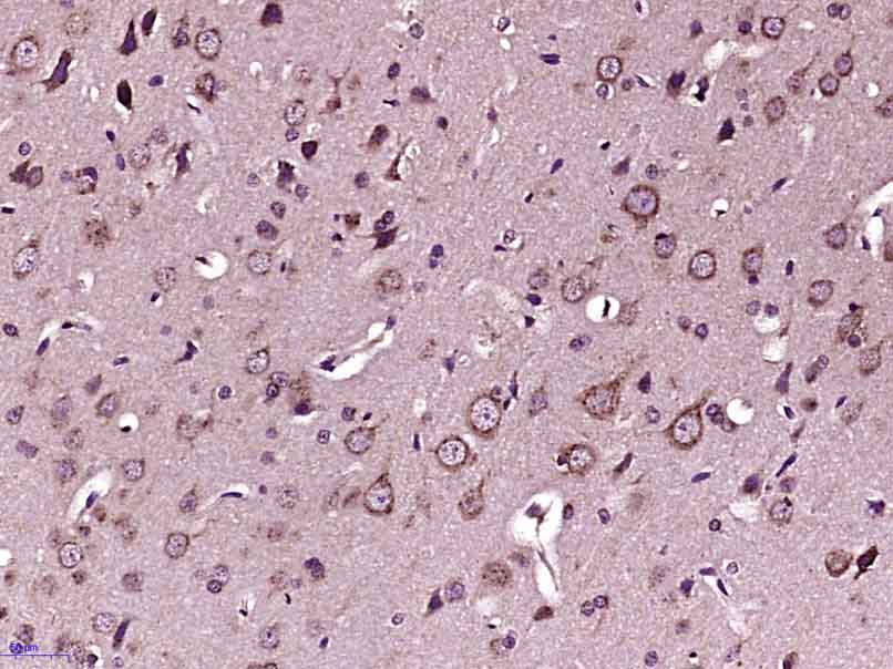 Paraformaldehyde-fixed, paraffin embedded (Rat brain); Antigen retrieval by boiling in sodium citrate buffer (pH6.0) for 15min; Block endogenous peroxidase by 3% hydrogen peroxide for 20 minutes; Blocking buffer (normal goat serum) at 37°C for 30min; Antibody incubation with (Tubb3) Polyclonal Antibody, Unconjugated (bs-2670R) at 1:400 overnight at 4°C, followed by operating according to SP Kit(Rabbit) (sp-0023) instructionsand DAB staining.