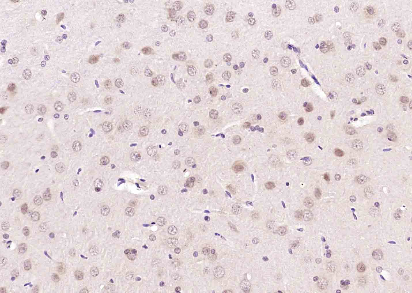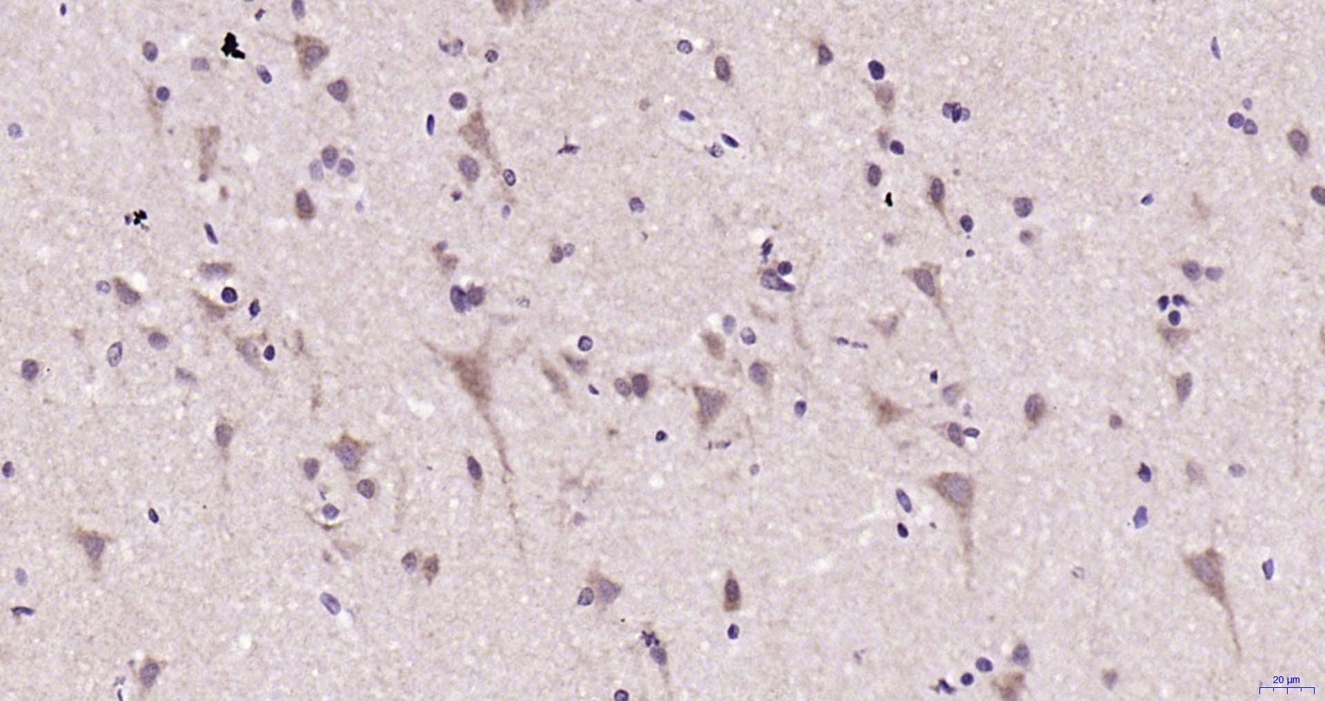 Paraformaldehyde-fixed, paraffin embedded Human Cerebrum; Antigen retrieval by boiling in sodium citrate buffer (pH6.0) for 15 min; Antibody incubation with MAPK11 Polyclonal Antibody, Unconjugated (bs-4138R) at 1:200 overnight at 4°C, followed by conjugation to the SP Kit (Rabbit, SP-0023) and DAB (C-0010) staining.