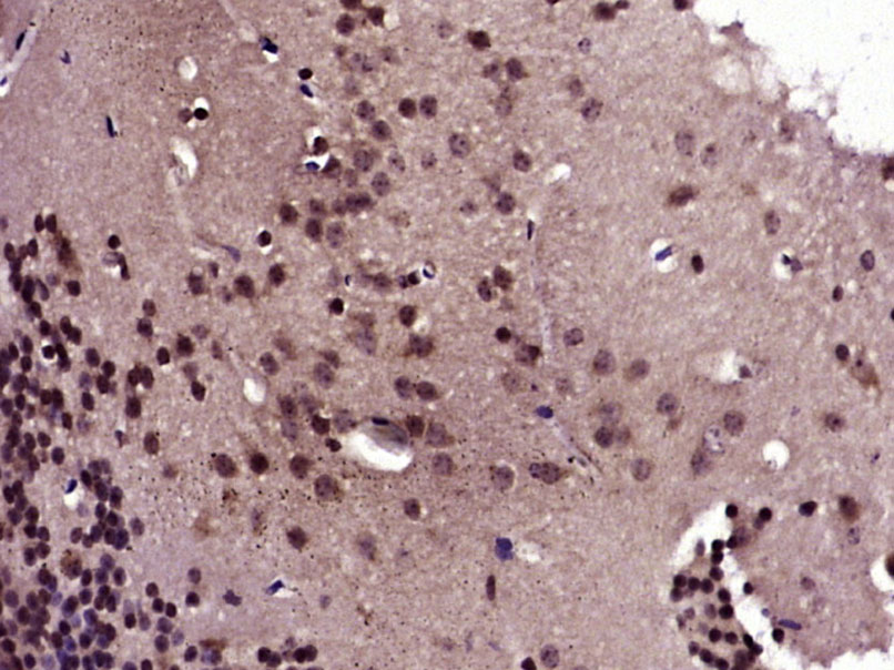Paraformaldehyde-fixed, paraffin embedded (Mouse brain); Antigen retrieval by boiling in sodium citrate buffer (pH6.0) for 15min; Block endogenous peroxidase by 3% hydrogen peroxide for 20 minutes; Blocking buffer (normal goat serum) at 37°C for 30min; Antibody incubation with (NF1) Polyclonal Antibody, Unconjugated (bs-4140R) at 1:400 overnight at 4°C, followed by operating according to SP Kit(Rabbit) (sp-0023) instructionsand DAB staining.