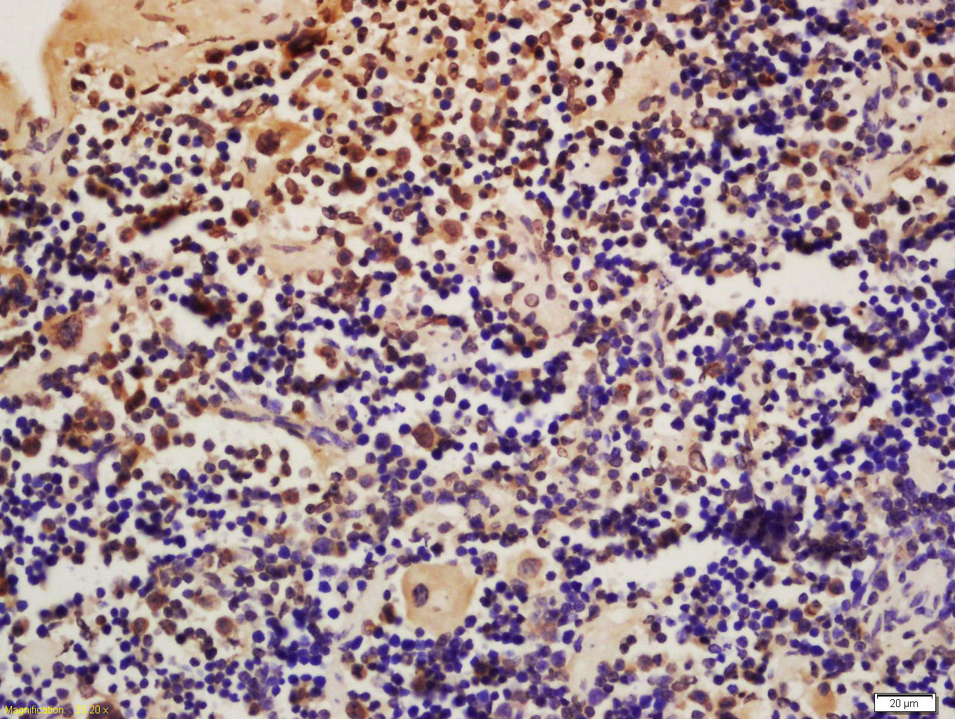 Antigen retrieval: citrate buffer ( 0.01M, pH 6.0 ), Boiling bathing for 15min; Block endogenous peroxidase by 3% Hydrogen peroxide for 30min; Blocking buffer (normal goat serum,C-0005) at 37℃ for 20 min;
