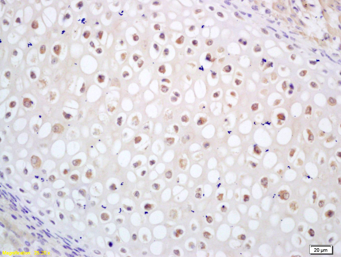 Antigen retrieval: citrate buffer ( 0.01M, pH 6.0 ), Boiling bathing for 15min; Block endogenous peroxidase by 3% Hydrogen peroxide for 30min; Blocking buffer (normal goat serum,C-0005) at 37℃ for 20 min;