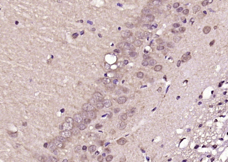 Paraformaldehyde-fixed, paraffin embedded (rat brain); Antigen retrieval by boiling in sodium citrate buffer (pH6.0) for 15min; Block endogenous peroxidase by 3% hydrogen peroxide for 20 minutes; Blocking buffer (normal goat serum) at 37°C for 30min; Antibody incubation with (Ube2G1) Polyclonal Antibody, Unconjugated (bs-8371R) at 1:200 overnight at 4°C, followed by operating according to SP Kit(Rabbit) (sp-0023) instructionsand DAB staining.