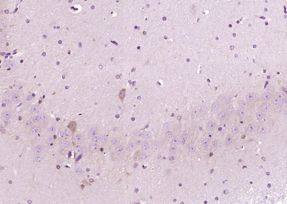 Paraformaldehyde-fixed, paraffin embedded (Rat brain); Antigen retrieval by boiling in sodium citrate buffer (pH6.0) for 15min; Block endogenous peroxidase by 3% hydrogen peroxide for 20 minutes; Blocking buffer (normal goat serum) at 37°C for 30min; Antibody incubation with (RNF70) Polyclonal Antibody, Unconjugated (bs-9223R) at 1:400 overnight at 4°C, followed by operating according to SP Kit(Rabbit) (sp-0023) instructionsand DAB staining.
