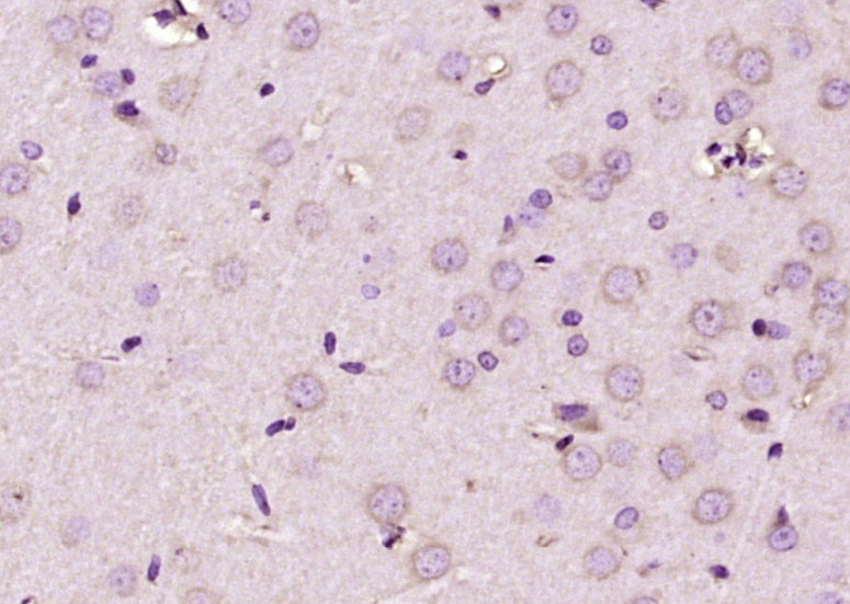 Paraformaldehyde-fixed, paraffin embedded (rat brain); Antigen retrieval by boiling in sodium citrate buffer (pH6.0) for 15min; Block endogenous peroxidase by 3% hydrogen peroxide for 20 minutes; Blocking buffer (normal goat serum) at 37°C for 30min; Antibody incubation with (FXR2) Polyclonal Antibody, Unconjugated (bs-6975R) at 1:200 overnight at 4°C, followed by operating according to SP Kit(Rabbit) (sp-0023) instructionsand DAB staining.