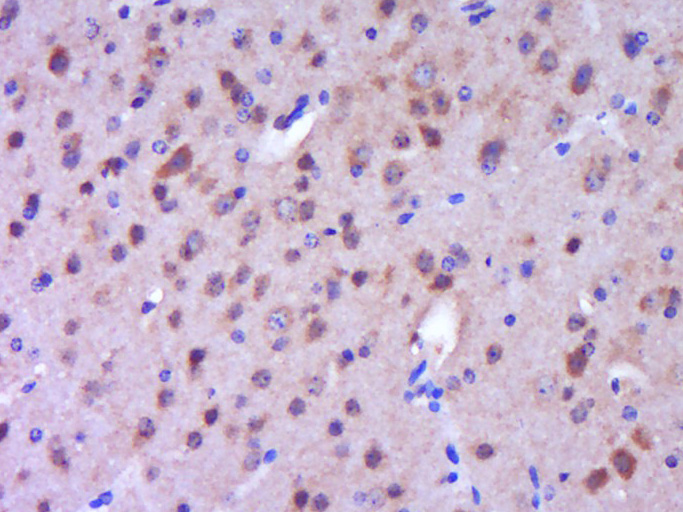 Paraformaldehyde-fixed, paraffin embedded (Mouse brain); Antigen retrieval by boiling in sodium citrate buffer (pH6.0) for 15min; Block endogenous peroxidase by 3% hydrogen peroxide for 20 minutes; Blocking buffer (normal goat serum) at 37°C for 30min; Antibody incubation with (HOPX) Polyclonal Antibody, Unconjugated (bs-9462R) at 1:400 overnight at 4°C, followed by operating according to SP Kit(Rabbit) (sp-0023) instructionsand DAB staining.