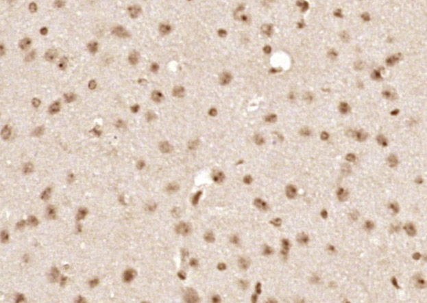 Paraformaldehyde-fixed, paraffin embedded (mouse brain tissue); Antigen retrieval by boiling in sodium citrate buffer (pH6.0) for 15min; Block endogenous peroxidase by 3% hydrogen peroxide for 20 minutes; Blocking buffer (normal goat serum) at 37°C for 30min; Antibody incubation with (ASH1L) Polyclonal Antibody, Unconjugated (bs-9671R) at 1:400 overnight at 4°C, followed by operating according to SP Kit(Rabbit) (sp-0023) instructionsand DAB staining.