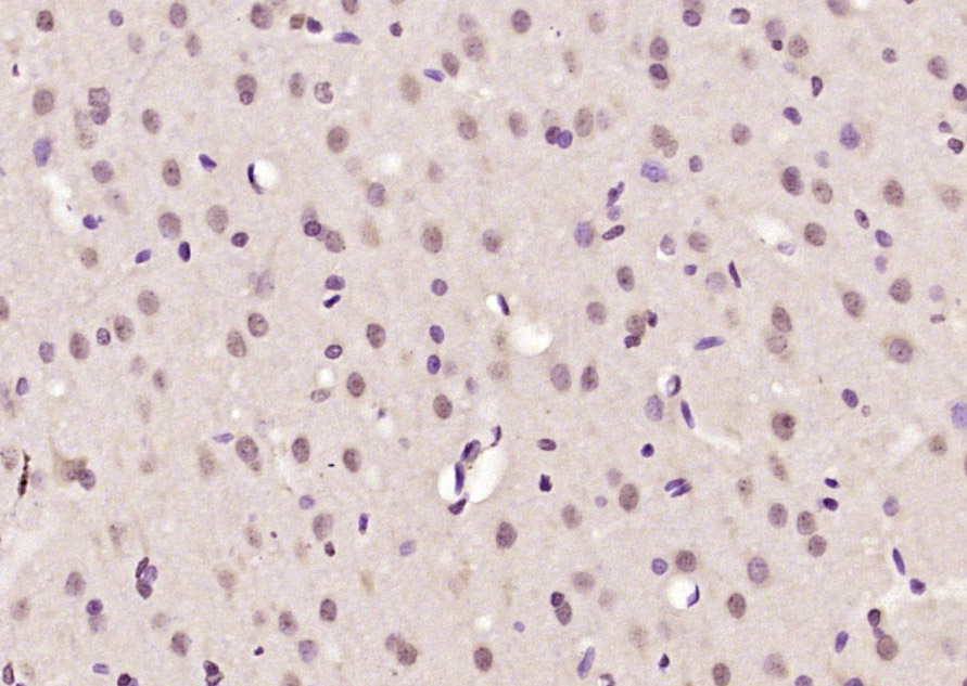 Paraformaldehyde-fixed, paraffin embedded (rat cerebellum); Antigen retrieval by boiling in sodium citrate buffer (pH6.0) for 15min; Block endogenous peroxidase by 3% hydrogen peroxide for 20 minutes; Blocking buffer (normal goat serum) at 37°C for 30min; Antibody incubation with (ELK4) Polyclonal Antibody, Unconjugated (bs-13067R) at 1:200 overnight at 4°C, followed by operating according to SP Kit(Rabbit) (sp-0023) instructionsand DAB staining.