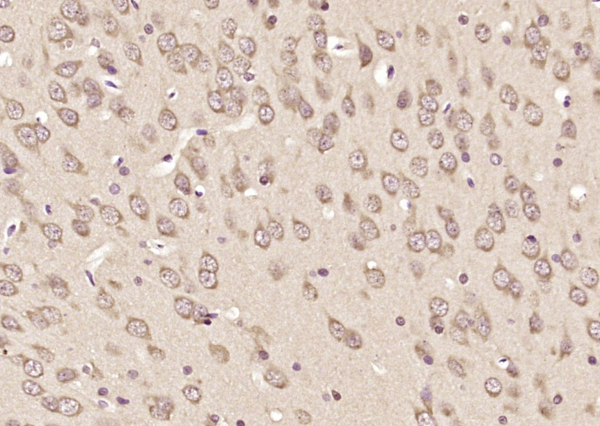 Paraformaldehyde-fixed, paraffin embedded (rat brain); Antigen retrieval by boiling in sodium citrate buffer (pH6.0) for 15min; Block endogenous peroxidase by 3% hydrogen peroxide for 20 minutes; Blocking buffer (normal goat serum) at 37°C for 30min; Antibody incubation with (Gemin 6) Polyclonal Antibody, Unconjugated (bs-13333R) at 1:200 overnight at 4°C, followed by operating according to SP Kit(Rabbit) (sp-0023) instructionsand DAB staining.
