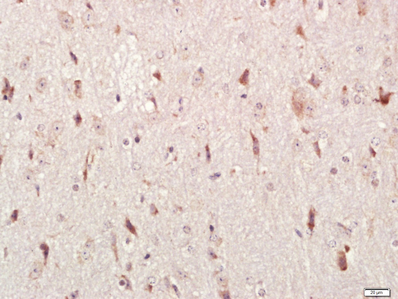 Paraformaldehyde-fixed, paraffin embedded (Mouse brain); Antigen retrieval by boiling in sodium citrate buffer (pH6.0) for 15min; Block endogenous peroxidase by 3% hydrogen peroxide for 20 minutes; Blocking buffer (normal goat serum) at 37°C for 30min; Antibody incubation with (HEG homolog 1) Polyclonal Antibody, Unconjugated (bs-15449R) at 1:400 overnight at 4°C, followed by a conjugated secondary antibody (sp-0023) for 20 minutes and DAB staining.