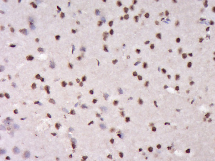 Paraformaldehyde-fixed, paraffin embedded (Rat brain); Antigen retrieval by boiling in sodium citrate buffer (pH6.0) for 15min; Block endogenous peroxidase by 3% hydrogen peroxide for 20 minutes; Blocking buffer (normal goat serum) at 37°C for 30min; Antibody incubation with (DNTTIP1) Polyclonal Antibody, Unconjugated (bs-14400R) at 1:400 overnight at 4°C, followed by operating according to SP Kit(Rabbit) (sp-0023) instructions and DAB staining.