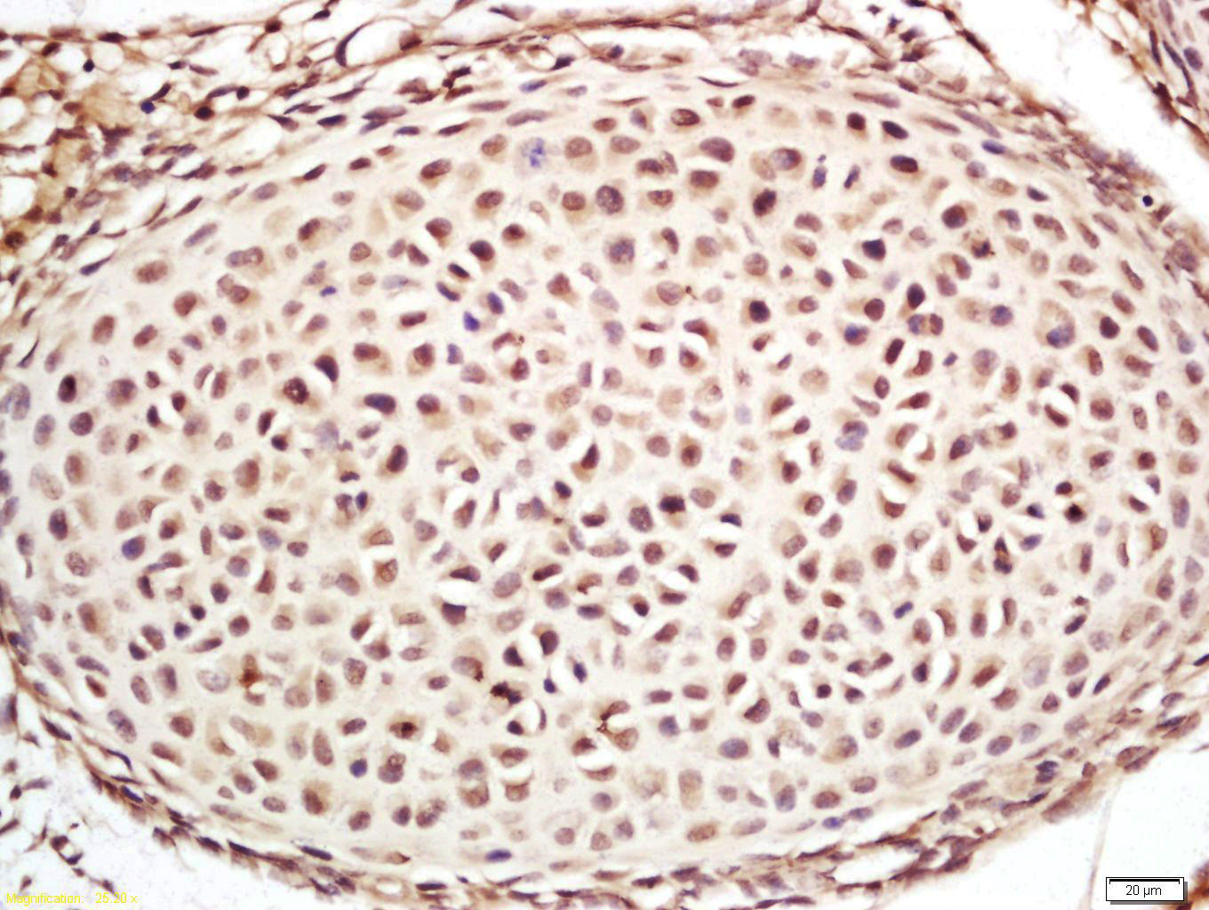 Antigen retrieval: citrate buffer ( 0.01M, pH 6.0 ), Boiling bathing for 15min; Block endogenous peroxidase by 3% Hydrogen peroxide for 30min; Blocking buffer (normal goat serum,C-0005) at 37℃ for 20 min;
