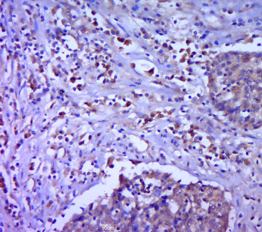 Paraformaldehyde-fixed, paraffin embedded (human cervical cancer); Antigen retrieval by boiling in sodium citrate buffer (pH6.0) for 15min; Block endogenous peroxidase by 3% hydrogen peroxide for 20 minutes; Blocking buffer (normal goat serum) at 37°C for 30min; Antibody incubation with (LITD1) Polyclonal Antibody, Unconjugated (bs-16875R) at 1:400 overnight at 4°C, followed by a conjugated secondary (sp-0023) for 20 minutes and DAB staining.