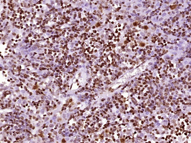 Paraformaldehyde-fixed, paraffin embedded (rat lymphoid tissue); Antigen retrieval by boiling in sodium citrate buffer (pH6.0) for 15min; Block endogenous peroxidase by 3% hydrogen peroxide for 20 minutes; Blocking buffer (normal goat serum) at 37°C for 30min; Antibody incubation with (SFRS2IP) Polyclonal Antibody, Unconjugated (bs-17298R) at 1:400 overnight at 4°C, followed by operating according to SP Kit(Rabbit) (sp-0023) instructionsand DAB staining.