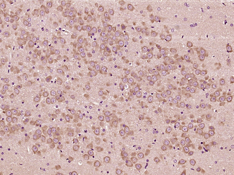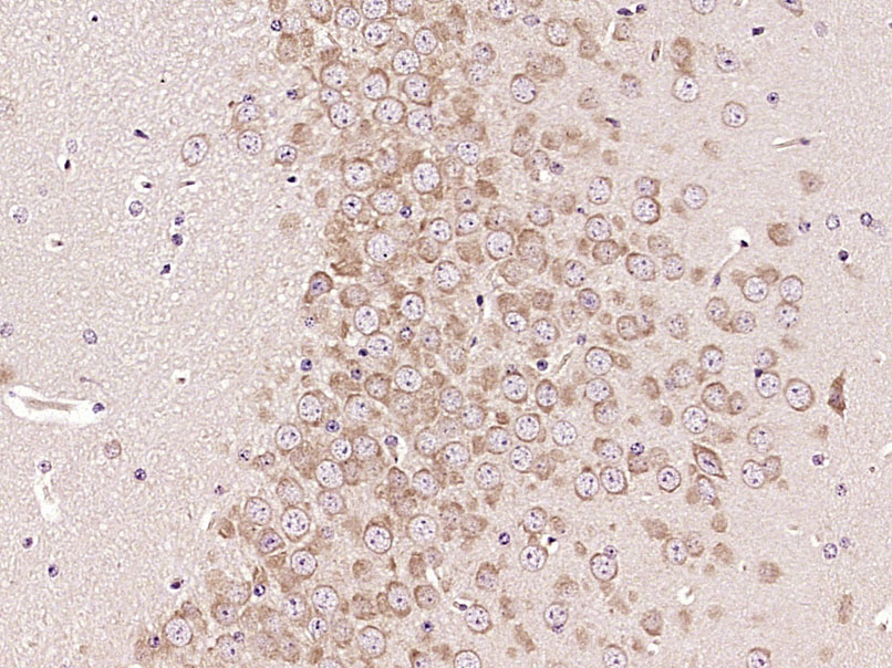 Paraformaldehyde-fixed, paraffin embedded (Mouse brain); Antigen retrieval by boiling in sodium citrate buffer (pH6.0) for 15min; Block endogenous peroxidase by 3% hydrogen peroxide for 20 minutes; Blocking buffer (normal goat serum) at 37°C for 30min; Antibody incubation with (Dopamine Receptor D1) Polyclonal Antibody, Unconjugated (bs-10612R) at 1:400 overnight at 4°C, followed by operating according to SP Kit(Rabbit) (sp-0023) instructionsand DAB staining.