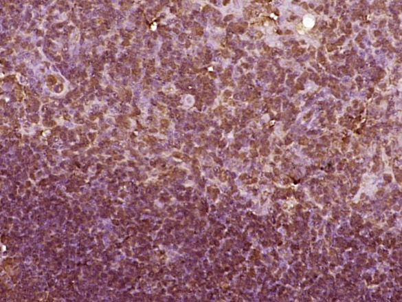 Paraformaldehyde-fixed, paraffin embedded (rat thymus); Antigen retrieval by boiling in sodium citrate buffer (pH6.0) for 15min; Block endogenous peroxidase by 3% hydrogen peroxide for 20 minutes; Blocking buffer (normal goat serum) at 37°C for 30min; Antibody incubation with (MSH5) Polyclonal Antibody, Unconjugated (bs-17852R) at 1:400 overnight at 4°C, followed by operating according to SP Kit(Rabbit) (sp-0023) instructionsand DAB staining.