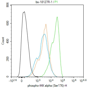 Primary Antibody (green line): Rabbit Anti-phospho-IKK alpha (Ser176) antibody (bs-18127R)