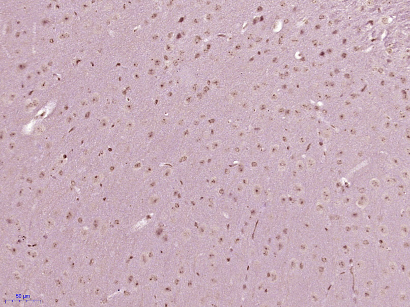 Paraformaldehyde-fixed, paraffin embedded (Mouse brain); Antigen retrieval by boiling in sodium citrate buffer (pH6.0) for 15min; Block endogenous peroxidase by 3% hydrogen peroxide for 20 minutes; Blocking buffer (normal goat serum) at 37°C for 30min; Antibody incubation with (MBTD1) Polyclonal Antibody, Unconjugated (bs-18710R) at 1:400 overnight at 4°C, followed by operating according to SP Kit(Rabbit) (sp-0023) instructionsand DAB staining.