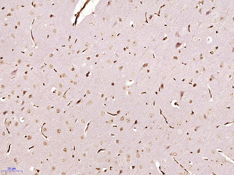 Paraformaldehyde-fixed, paraffin embedded (Rat brain); Antigen retrieval by boiling in sodium citrate buffer (pH6.0) for 15min; Block endogenous peroxidase by 3% hydrogen peroxide for 20 minutes; Blocking buffer (normal goat serum) at 37°C for 30min; Antibody incubation with (MONDOA) Polyclonal Antibody, Unconjugated (bs-18957R) at 1:400 overnight at 4°C, followed by operating according to SP Kit(Rabbit) (sp-0023) instructionsand DAB staining.