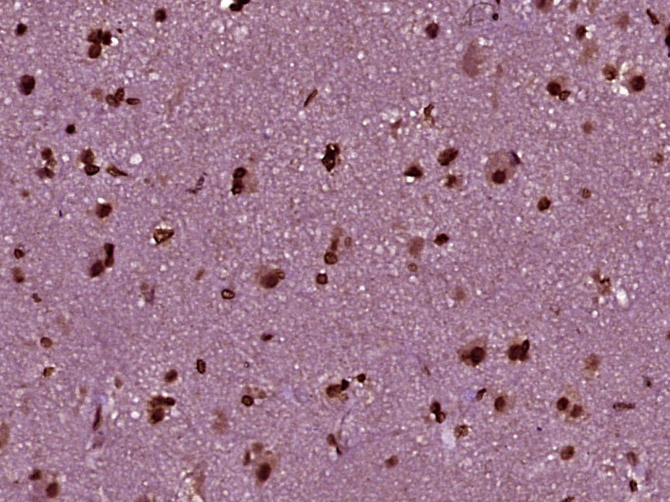 Paraformaldehyde-fixed, paraffin embedded (human brain glioma); Antigen retrieval by boiling in sodium citrate buffer (pH6.0) for 15min; Block endogenous peroxidase by 3% hydrogen peroxide for 20 minutes; Blocking buffer (normal goat serum) at 37°C for 30min; Antibody incubation with (NCOA5) Polyclonal Antibody, Unconjugated (bs-19052R) at 1:400 overnight at 4°C, followed by operating according to SP Kit(Rabbit) (sp-0023) instructionsand DAB staining.