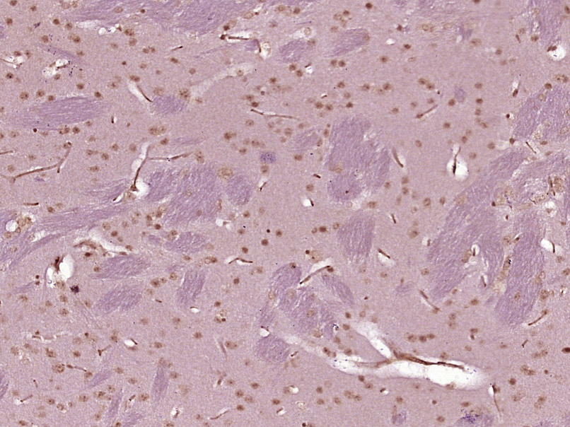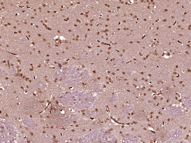 Paraformaldehyde-fixed, paraffin embedded (Rat brain); Antigen retrieval by boiling in sodium citrate buffer (pH6.0) for 15min; Block endogenous peroxidase by 3% hydrogen peroxide for 20 minutes; Blocking buffer (normal goat serum) at 37°C for 30min; Antibody incubation with (SMCHD1) Polyclonal Antibody, Unconjugated (bs-19929R) at 1:400 overnight at 4°C, followed by operating according to SP Kit(Rabbit) (sp-0023) instructionsand DAB staining.