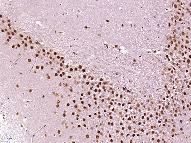 Paraformaldehyde-fixed, paraffin embedded (Mouse brain); Antigen retrieval by boiling in sodium citrate buffer (pH6.0) for 15min; Block endogenous peroxidase by 3% hydrogen peroxide for 20 minutes; Blocking buffer (normal goat serum) at 37°C for 30min; Antibody incubation with (PUS7L) Polyclonal Antibody, Unconjugated (bs-21112R) at 1:400 overnight at 4°C, followed by operating according to SP Kit(Rabbit) (sp-0023) instructionsand DAB staining.