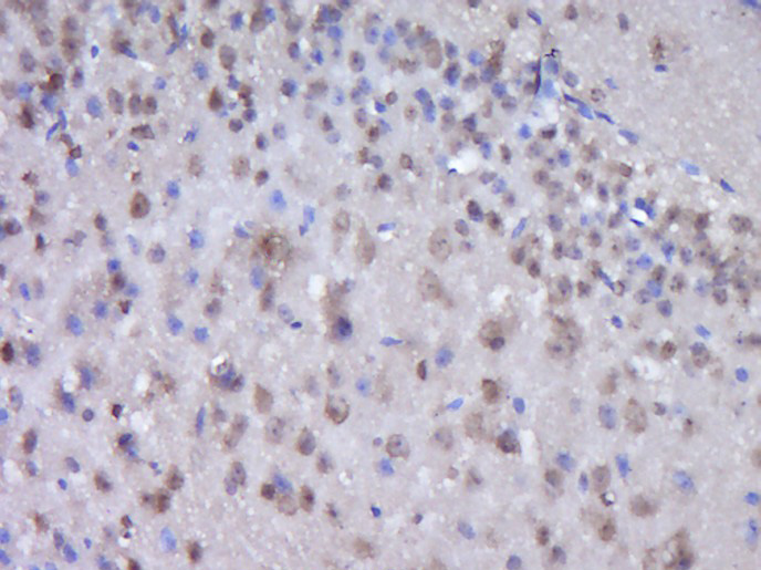 Paraformaldehyde-fixed, paraffin embedded (Mouse brain); Antigen retrieval by boiling in sodium citrate buffer (pH6.0) for 15min; Block endogenous peroxidase by 3% hydrogen peroxide for 20 minutes; Blocking buffer (normal goat serum) at 37°C for 30min; Antibody incubation with (CNOT6) Polyclonal Antibody, Unconjugated (bs-10719R) at 1:400 overnight at 4°C, followed by operating according to SP Kit(Rabbit) (sp-0023) instructions and DAB staining.