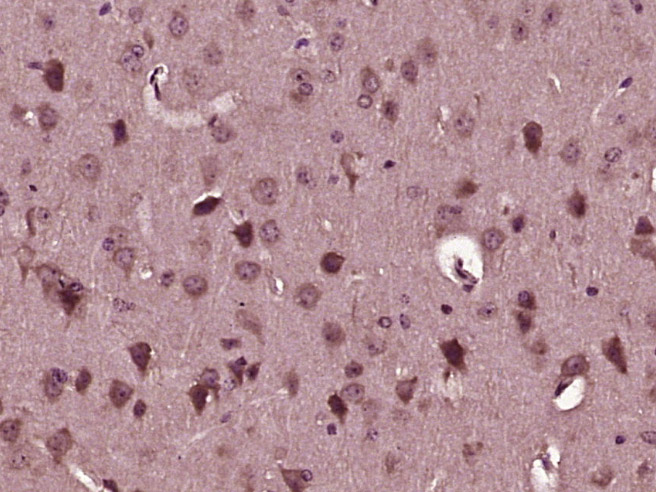 Paraformaldehyde-fixed, paraffin embedded (mouse brain tissue); Antigen retrieval by boiling in sodium citrate buffer (pH6.0) for 15min; Block endogenous peroxidase by 3% hydrogen peroxide for 20 minutes; Blocking buffer (normal goat serum) at 37°C for 30min; Antibody incubation with (SBNO2) Polyclonal Antibody, Unconjugated (bs-23726R) at 1:400 overnight at 4°C, followed by operating according to SP Kit(Rabbit) (sp-0023) instructionsand DAB staining.