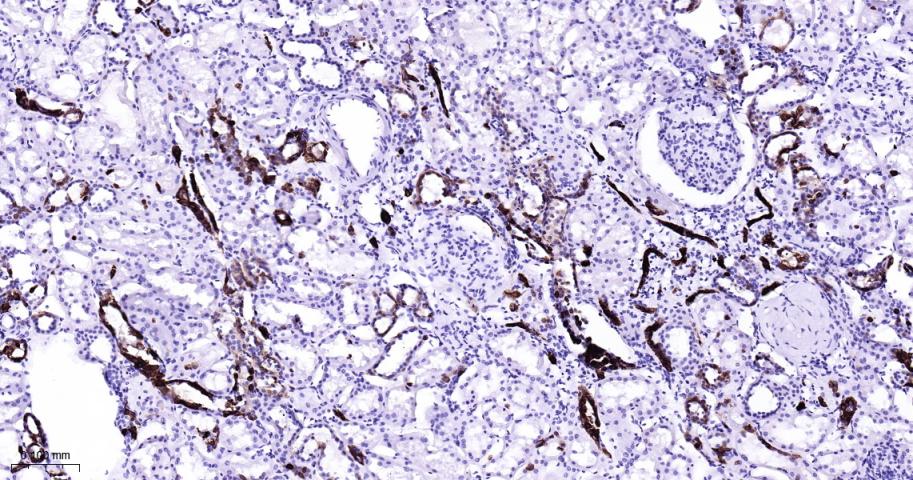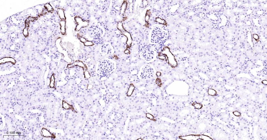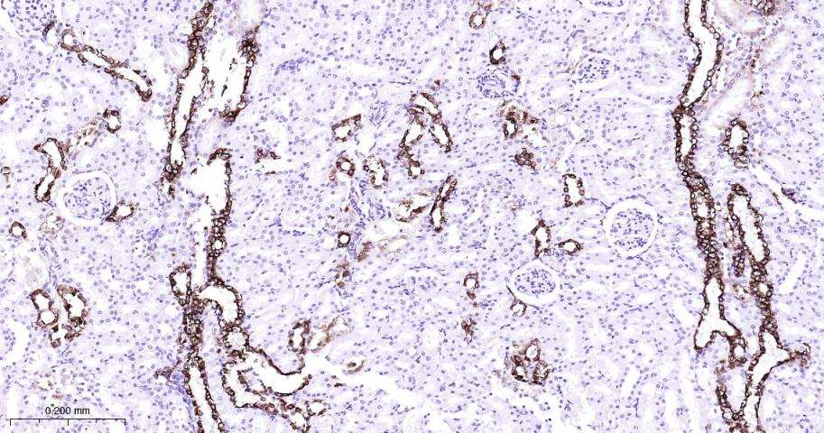 Paraformaldehyde-fixed, paraffin embedded Mouse kidney; Antigen retrieval by boiling in sodium citrate buffer (pH6.0) for 15 min; Antibody incubation with CK7 Monoclonal Antibody, Unconjugated(bsm-52065R) at 1:200 overnight at 4°C, followed by conjugation to the bs-0295G-HRP and DAB (C-0010) staining.