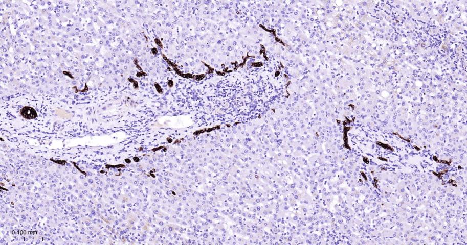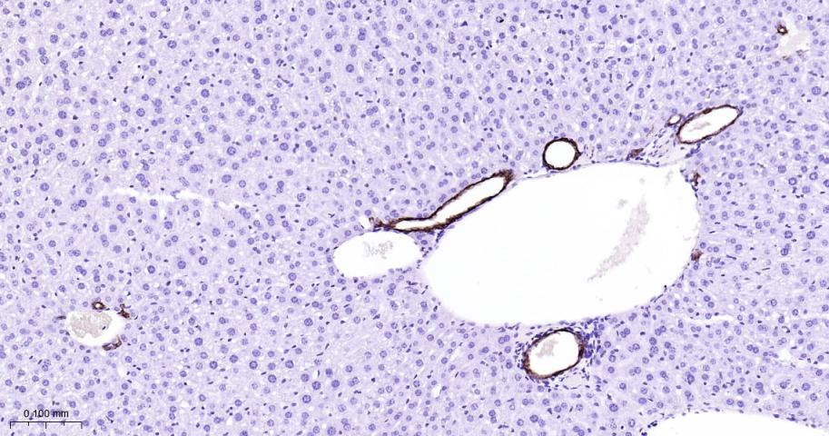 Paraformaldehyde-fixed, paraffin embedded Mouse liver; Antigen retrieval by boiling in sodium citrate buffer (pH6.0) for 15 min; Antibody incubation with CK7 Monoclonal Antibody, Unconjugated(bsm-52065R) at 1:200 overnight at 4°C, followed by conjugation to the bs-0295G-HRP and DAB (C-0010) staining.