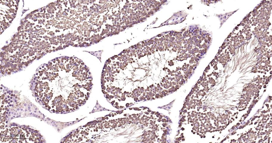 Paraformaldehyde-fixed, paraffin embedded Mouse Testicles; Antigen retrieval by boiling in sodium citrate buffer (pH6.0) for 15 min; Antibody incubation with HSP70 Monoclonal Antibody, Unconjugated(bsm-52241R) at 1:200 overnight at 4°C, followed by conjugation to the bs-0295G-HRP and DAB (C-0010) staining.