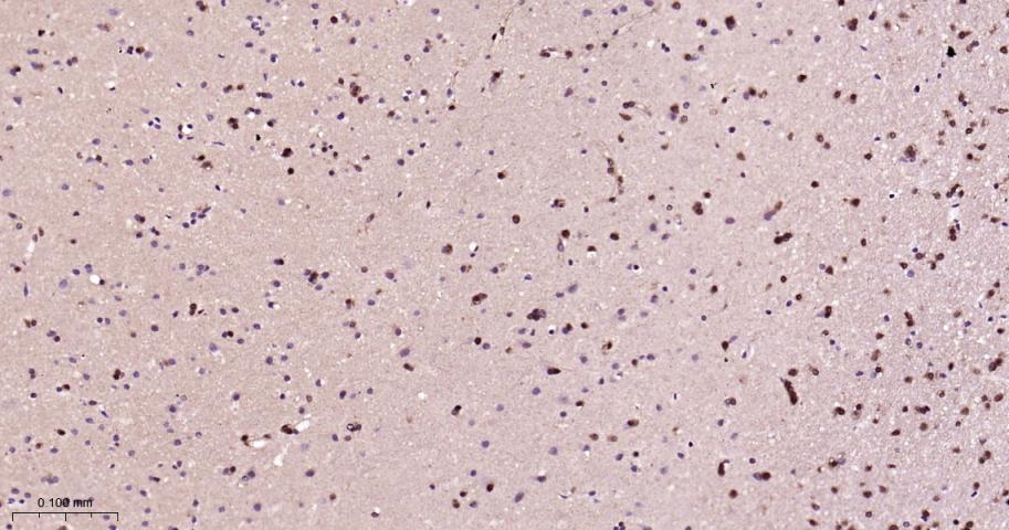 Paraformaldehyde-fixed, paraffin embedded Human Cerebrum; Antigen retrieval by boiling in sodium citrate buffer (pH6.0) for 15 min; Antibody incubation with HSP70 Monoclonal Antibody, Unconjugated(bsm-52241R) at 1:200 overnight at 4°C, followed by conjugation to the bs-0295G-HRP and DAB (C-0010) staining.