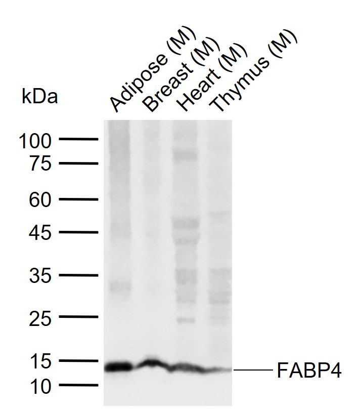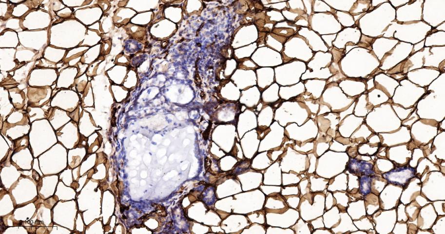 Paraformaldehyde-fixed, paraffin embedded Mouse Breast; Antigen retrieval by boiling in sodium citrate buffer (pH6.0) for 15 min; The section was incubated with FABP4 Monoclonal Antibody, Unconjugated (bsm-52973R) at 1:200 overnight at 4°C, followed by conjugation to the bs-0295G-HRP and DAB (C-0010) staining.
