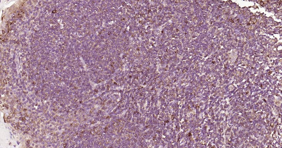 Paraformaldehyde-fixed, paraffin embedded Human Tonsil; Antigen retrieval by boiling in sodium citrate buffer (pH6.0) for 15 min; Antibody incubation withIL-4? Monoclonal Antibody, Unconjugated(bsm-54002R) at 1:200 overnight at 4°C, followed by conjugation to the bs-0295G-HRP and DAB (C-0010) staining.