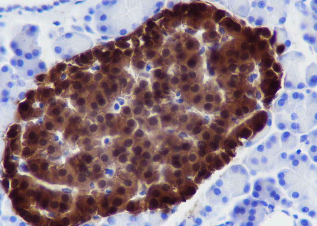 The encoded protein is a secreted calcium-binding protein which is found in the cytoplasm. It is related to calbindin D-28K and calretinin. This protein is thought to be involved in KCL-stimulated calcium flux and cell proliferation. [provided by RefSeq, Jul 2008] Subcellular Location: Cytoplasm. Secreted.Cytoplasmic vesicle, secretory vesicle membrane; Peripheralmembrane protein; Cytoplasmic side.Note=Predominantly cytoplasmic. A small proportion is associatedwith secretory granules and membrane fractions.Detectable in human serum after ischemic neuronal damage. Tissue Specificity: Expressed at high levels in the pancreatic islets of Langerhans and to a much lesser extent in the gastrointestinal tract (stomach, small intestine and colon), the adrenal medulla and cortex and the thyroid C-cells. In the brain, the expression is restricted to distinct subtypes of neurons with highest expression in the molecular layer of the cerebellum (stellate and basket cells), in the anterior part of the pituitary gland, in the thalamus, in the hypothalamus and in a subgroup of neocortical neurons. Database links: Entrez Gene: 10590 Human SwissProt: O76038 Human 該蛋白是在細(xì)胞質(zhì)中發(fā)現(xiàn)的一種分泌的鈣結(jié)合蛋白。它與鈣調(diào)蛋白D-28K和鈣調(diào)蛋白有關(guān)。該蛋白被認(rèn)為與KCL刺激的鈣通量和細(xì)胞增殖有關(guān)。與SCGN相關(guān)的疾病包括胰島素瘤和神經(jīng)內(nèi)分泌腫瘤。其相關(guān)途徑包括Neuroscience和Ca,cAMP和脂質(zhì)信號傳導(dǎo)。該基因的重要旁系同源物是CALB2。 |