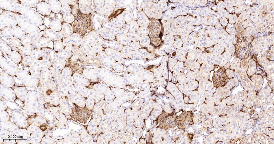 Paraformaldehyde-fixed, paraffin embedded Rat Kidney; Antigen retrieval by boiling in sodium citrate buffer (pH6.0) for 15 min; The section was incubated with Galectin-1 Monoclonal Antibody, Unconjugated (bsm-60296R) at 1:200 overnight at 4°C, followed by conjugation to the bs-0295G-HRP and DAB (C-0010) staining.