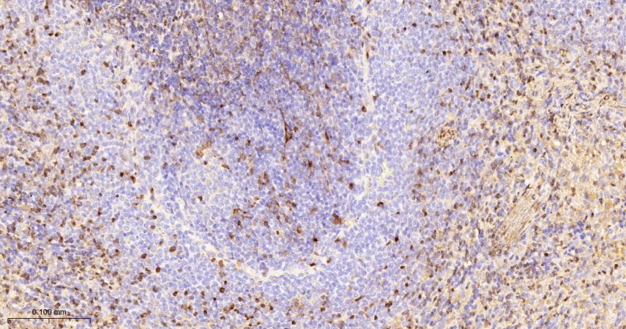 Paraformaldehyde-fixed, paraffin embedded Rat Spleen; Antigen retrieval by boiling in sodium citrate buffer (pH6.0) for 15 min; The section was incubated with Galectin-1 Monoclonal Antibody, Unconjugated (bsm-60296R) at 1:200 overnight at 4°C, followed by conjugation to the bs-0295G-HRP and DAB (C-0010) staining.