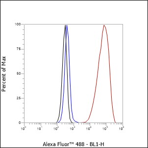 Unlabelled control: The cell without incubation with primary antibody and secondary antibody (Black line).
